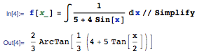 ![In[4]= f[x_] = \[Integral]1/(5 + 4 Sin[x]) \[DifferentialD]x // Simplify In[4]= f[x_] = \[Integral]1/(5 + 4 Sin[x]) \[DifferentialD]x // Simplify](https://content.wolfram.com/sites/39/2021/01/duplicate_pavlyk_6.gif)