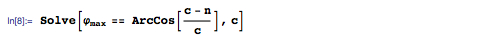 The constant of proportionality c governs the density of the seeds. I solved for its value as a function of the total number of seeds n and the maximum angular radius φmax: