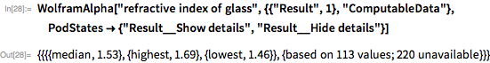 ![WolframAlpha["refractive index of glass", {{"Result", 1}, "ComputableData"}, PodStates -> {"Result__Show details", "Result__Hide details"}] WolframAlpha["refractive index of glass", {{"Result", 1}, "ComputableData"}, PodStates -> {"Result__Show details", "Result__Hide details"}]](https://content.wolfram.com/sites/39/2017/08/InOutImg281.png)