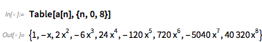 The following input returns a Taylor series expansion up to order 8 around 0 for the cosine function: